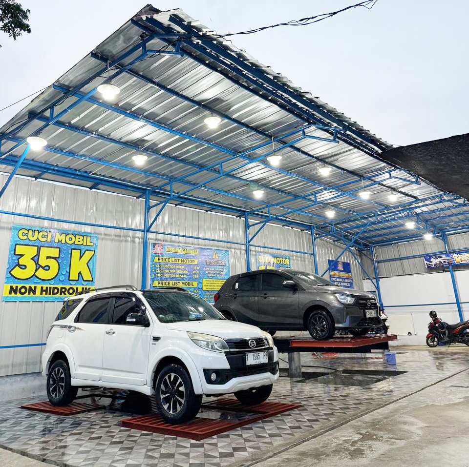 Layanan cuci mobil menggunakan alat hidrolik untuk mengangkat kendaraan, memastikan pembersihan lebih mendalam, terutama pada bagian bawah mobil. Cocok untuk perawatan ekstra.